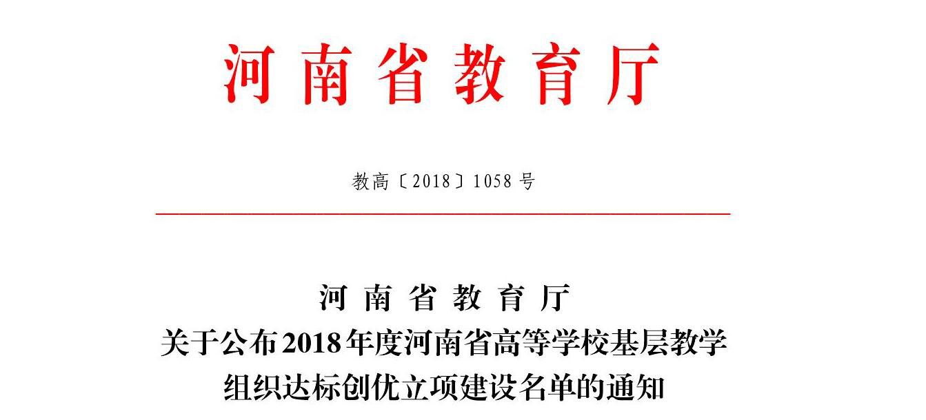 近日,河南省教育厅下发《关于公布2018年度河南省高等学校基层教学组织达标创优立项建设名单的通知》(教高〔2018〕1058号),公布了2018年度省级优秀基层教学组织立项建设名单和合格基层教学组织备案名单。我校社会科学学院教育学教研室被省教育厅认定为2018年度河南省高等学校优秀基层教学组织并予以立项建设;化学教研室、大学生就业创业指导教研室、中国古代文学教研室、综合英语教研室、经济学教研室、语言学教研室、心理学教研室、数学分析教研室、视觉传达设计教研室、建筑工程教研室等10个教研室获得2018年度河南省高等学校合格基层教学组织备案。目前,我校已有财务分析教研室、教育学教研室2个省级优秀基层教学组织获得立项建设。