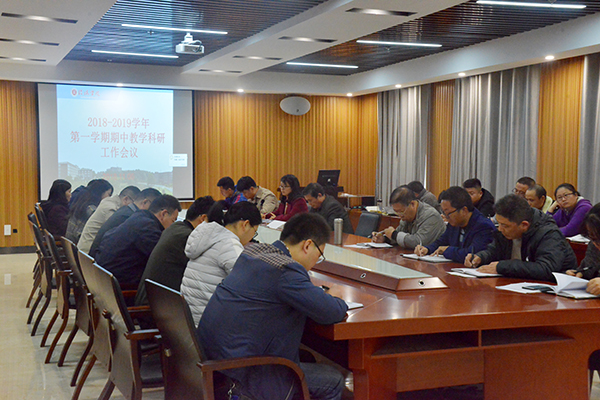 11月6日,我校2018-2019学年第一学期期中教学科研工作会在综合楼1410会议室召开。有关校领导出席会议。文、理两科组督导组长,各学院教学秘书(干事)、教研室主任及教务处全体人员参加了会议。教务处负责人主持了会议。