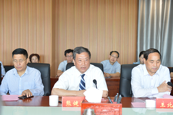 熊健民在讲话中表达了对湖北大学的深厚情谊和两校合作的良好愿景。他说,自己在湖北大学工作多年,与学校师生建立了深厚的情谊;家乡的信阳学院快速发展,是民办高校中后起之秀。今天,湖北大学与信阳学院签署合作协议,是一个值得铭记的日子。在科技迅猛发展、经济全球化的大背景下,要办好一所大学,必须走开放、交流、协同的道路。信阳学院和湖北大学虽然隶属不同省份,但在探究知识、探求未知和追求真理视角下,大学无国界,更无省界。两校地理位置相邻,交通便利,有利于相互间的合作和交流。自己将发挥好纽带作用,为两校合作献计献策,使之取得实效,为信阳学院内涵建设和质量提升添砖加瓦,为两校又好又快发展做出积极贡献。