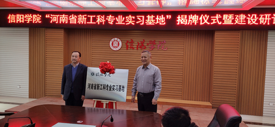 在热烈的掌声中,周伟和王强共同为“河南省新工科专业实习基地”揭牌。