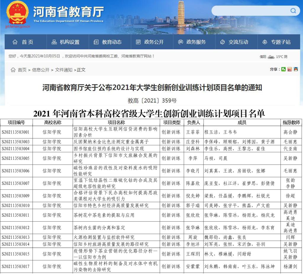 近日,河南省教育厅发布《关于公布2021年大学生创新创业训练计划项目名单的通知》(教高〔2021〕359号),我校14项课题获批2021年河南省高校省级大学生创新创业训练计划项目立项。