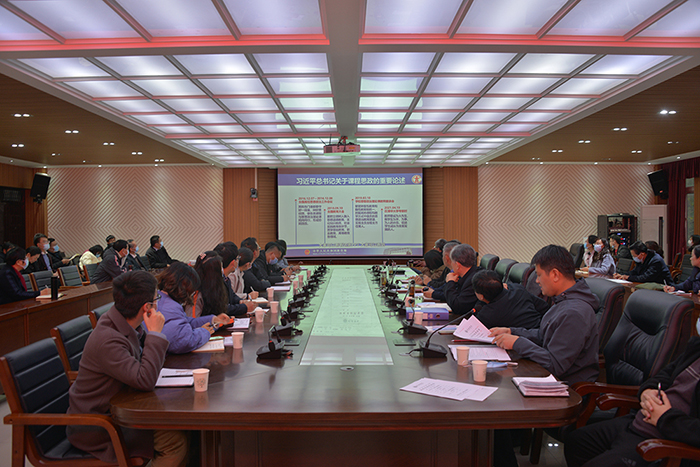 近日,由教育部高等教育司指导,全国高校教师网络培训中心主办的高校教师课程思政教学能力培训线上开班。我校在人文楼208会议室设立分会场,集中收看培训开班式和首日讲座。副校长王强出席活动。教务处处长陈文涛、副处长邓荣娟,教学质量监控中心主任岳中奇,全体专兼职督导专家,各教学单位副院长(主任)、教学秘书(干事),教研室主任及教务处全体人员参加了培训,任课教师在各教学单位分会场参加培训。