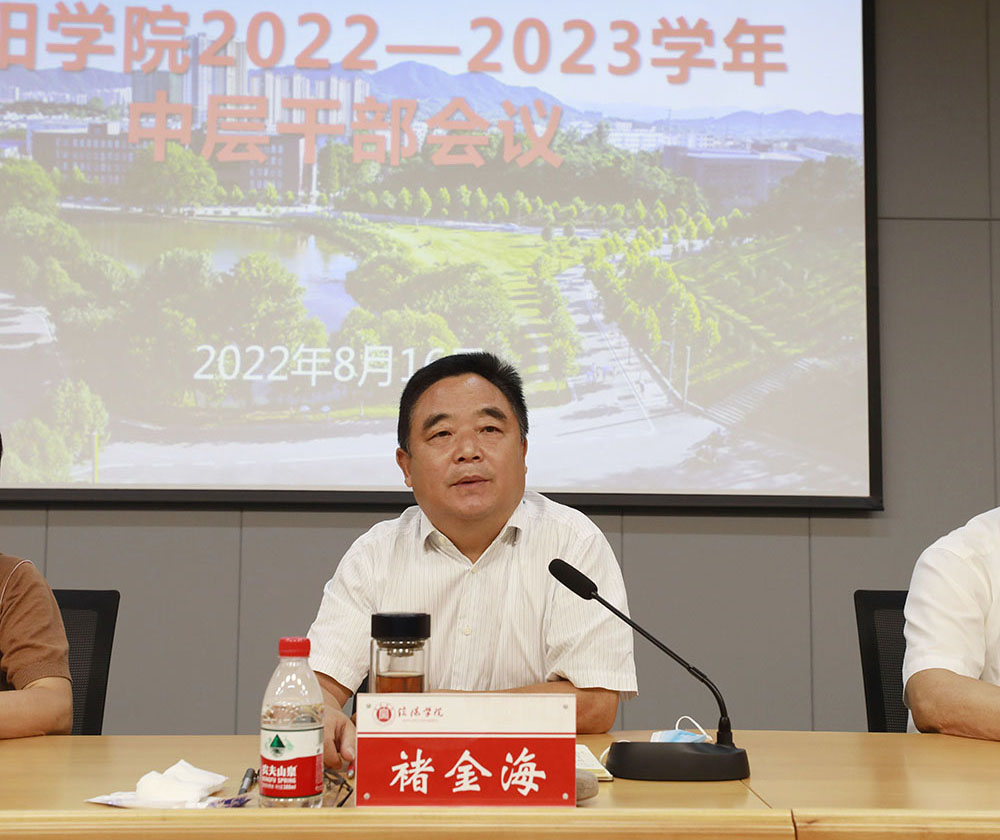 8月16日,学校在图书馆101学术报告厅召开2022—2023学年中层干部会。理事长高云,党委书记褚金海,校长王北生,战略发展咨询委员会主任熊健民,专职副书记施昌海,副校长王强,校长助理高雅、张永志等在校校领导出席会议。全校中层干部参加会议。褚金海主持会议。各职能部门和各学院设分会场同步收看会议。